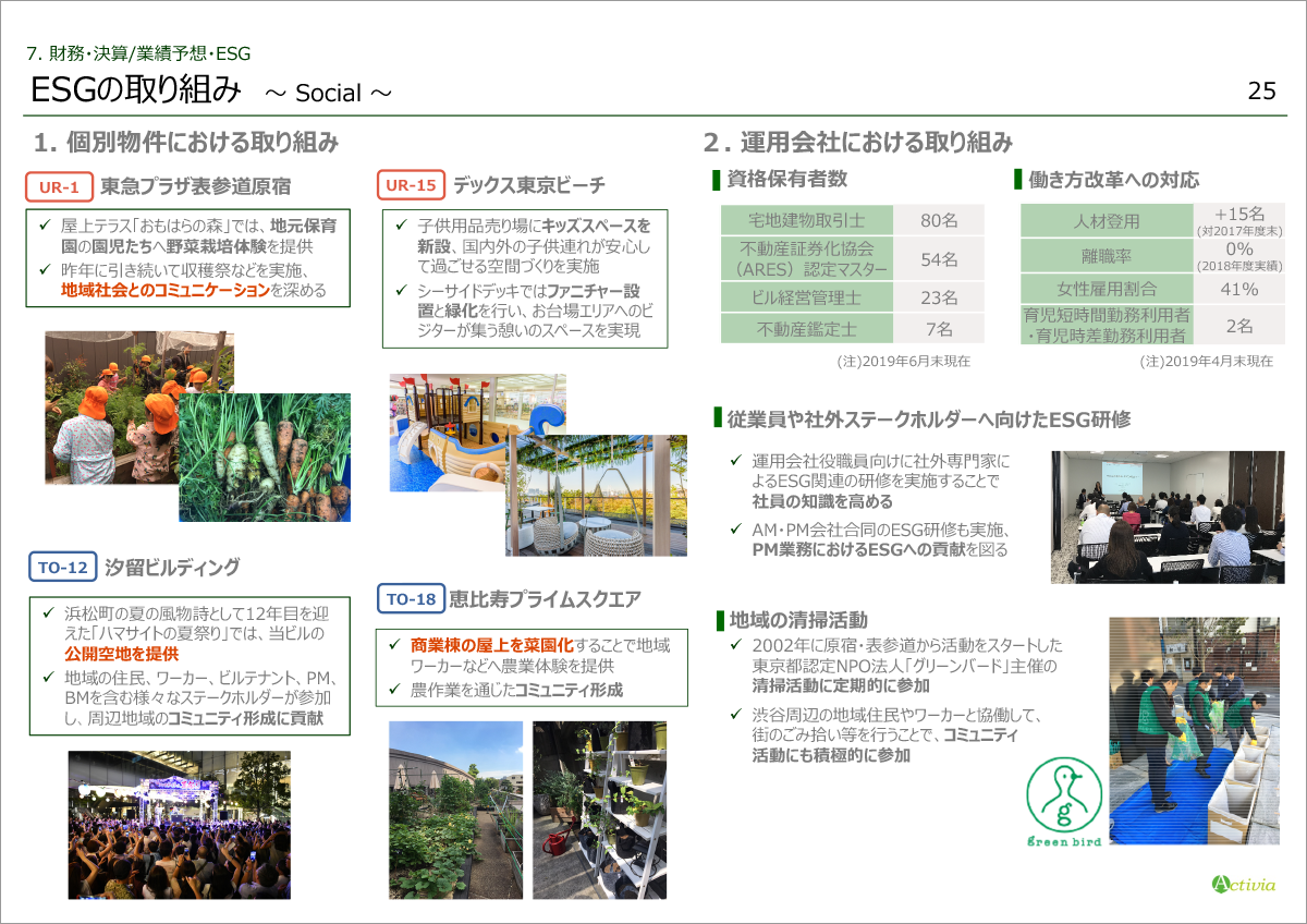 本投資法人では、「東急プラザ表参道原宿」、「汐留ビルディング」といった地域コミュニティの核となるような旗艦物件を数多く運営しており、オフィスワーカー、地域住民、施設利用者との交流の機会を提供するなど、今後もステークホルダーの皆様とも協働しながら、社会に配慮した取り組みを行ってまいりたいと考えております。