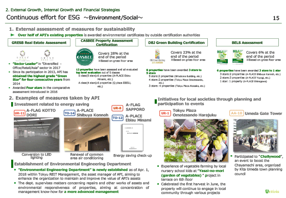With respect to effort to sustainability, API has awarded environmental certificates such as GRESB Real Estate Assessment for over half of its existing portfolio.