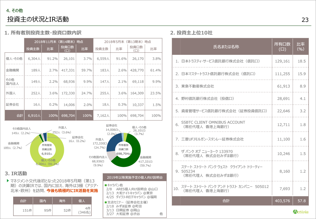 今後もしっかり投資主様とリレーションをとり、コミュニケーションを図りたいと考えております。