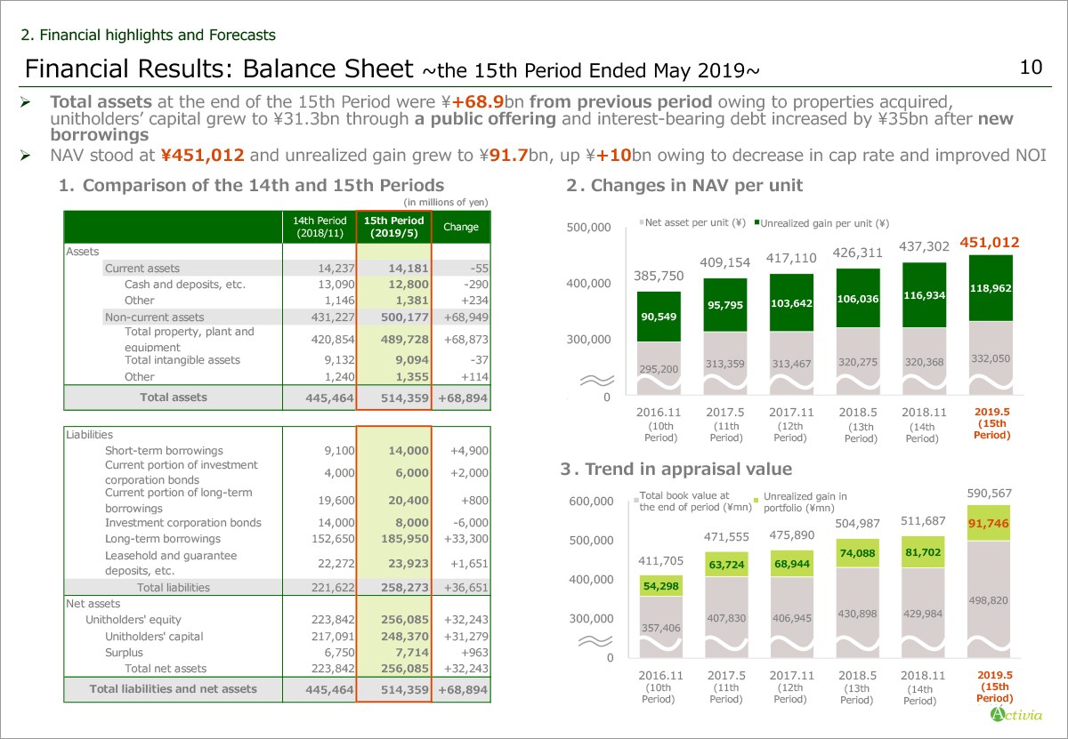 Unrealized gain grew to ¥91.7 billion, up ¥10 billion as a result of increase in appraisal value owning to decrease in cap rate and improved NOI. Please move on to the next page.